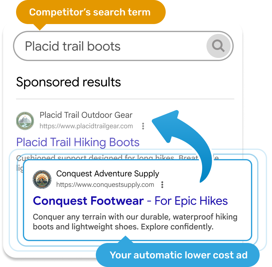 Conquesting is critical for brands seeking to capture market share from top-tier competitors, but low Quality Scores typically make these campaigns expensive. AdAi Conquesting lowers this financial barrier by reducing the budget waste of head-to-head bidding.