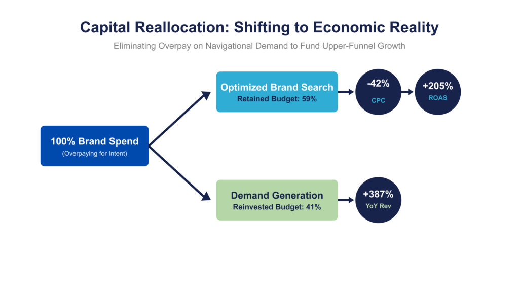 The objective is not to reduce brand visibility. It is to protect navigational demand while eliminating inefficient spend, freeing capital that can be redeployed toward growth initiatives.