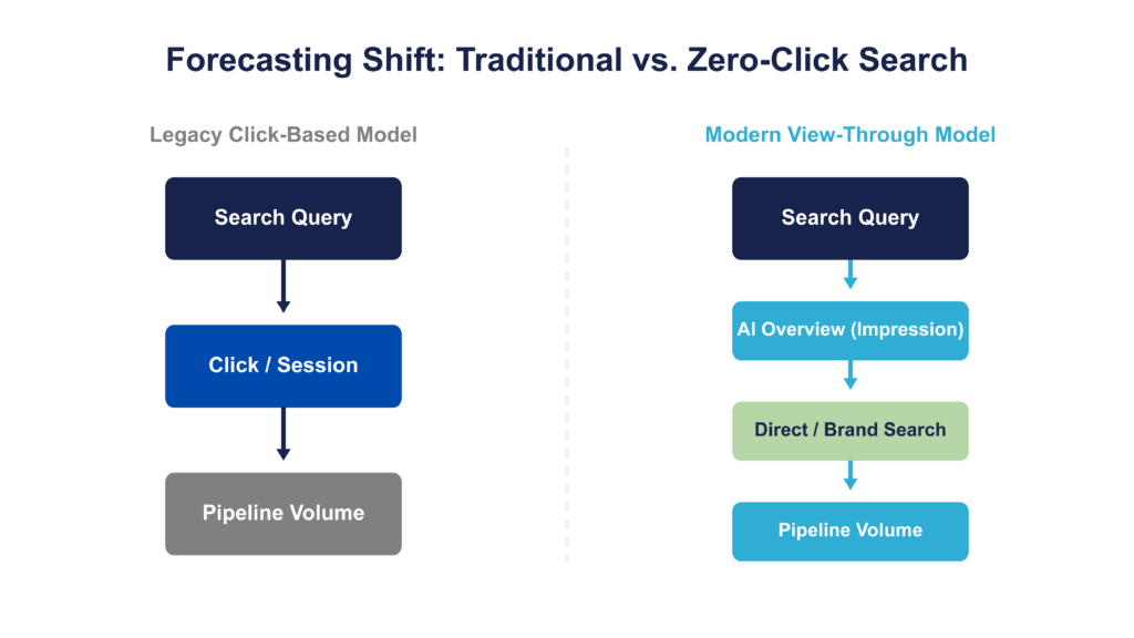 It is to rebuild forecasting models around how modern search actually functions, separating visibility from interaction, influence from last-click credit, and volatility from true revenue risk.